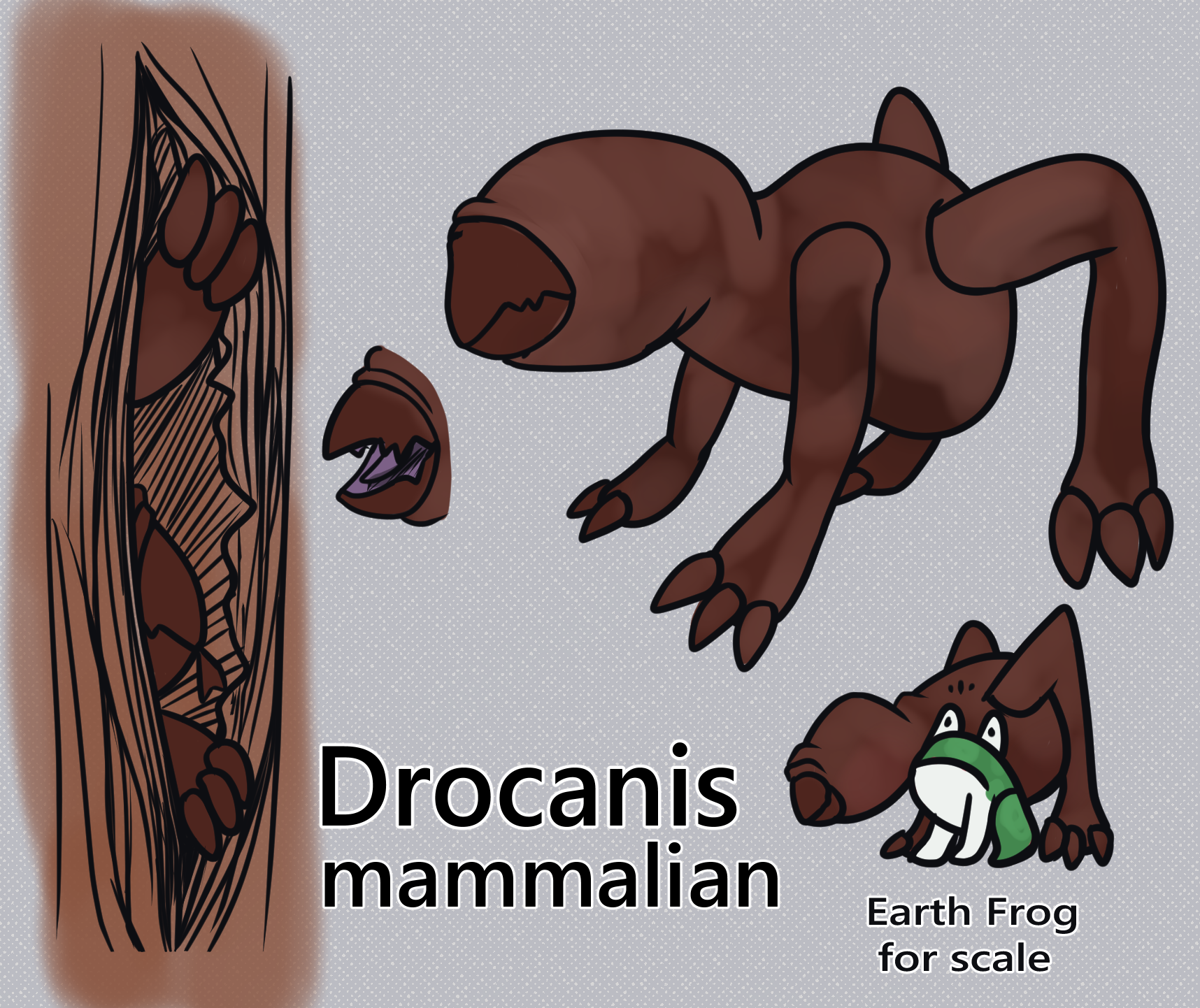 Draconis are quadraped mammalian animals that lack fur and eyes.