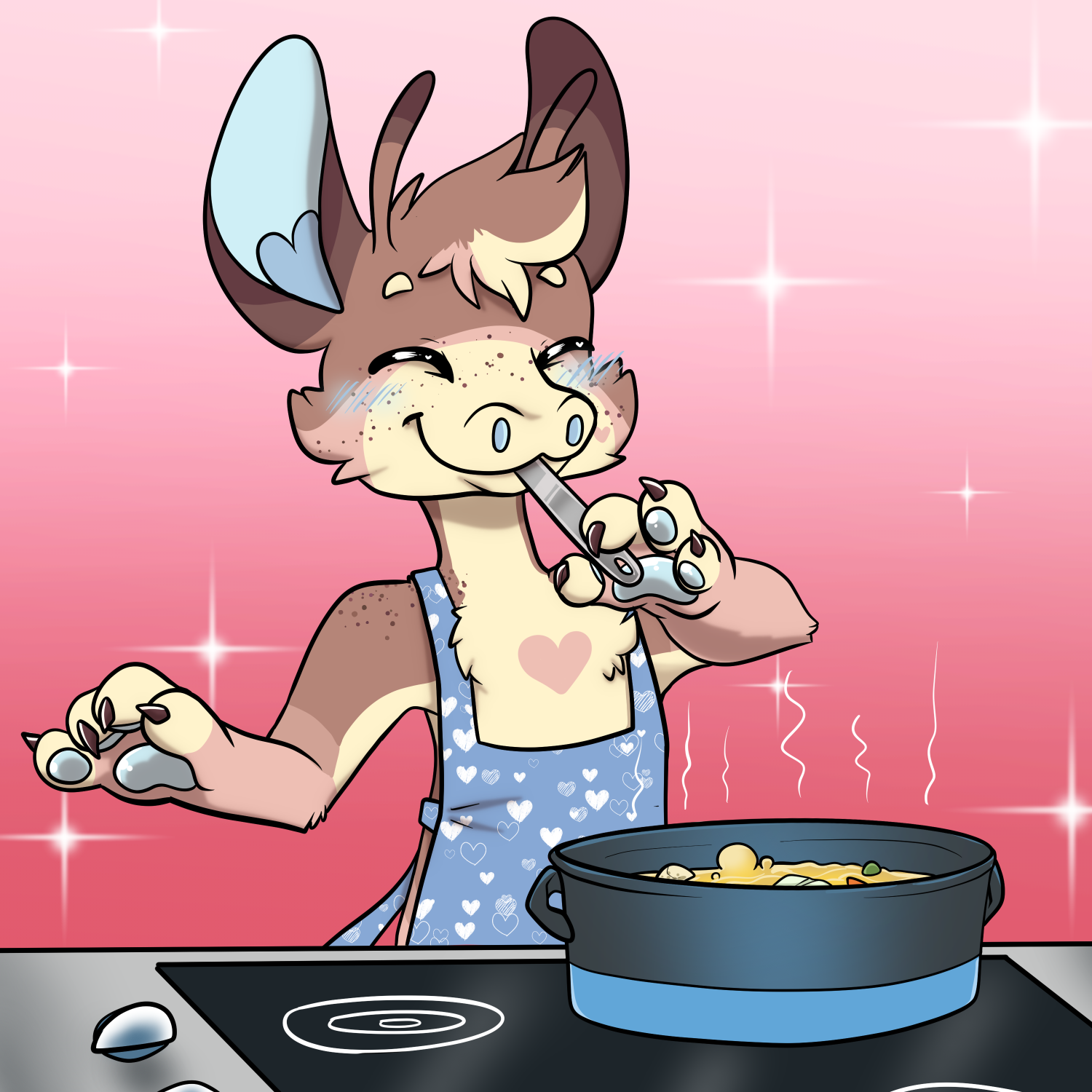 Neo making some food for some friends later and making sure it's cooked to perfection!