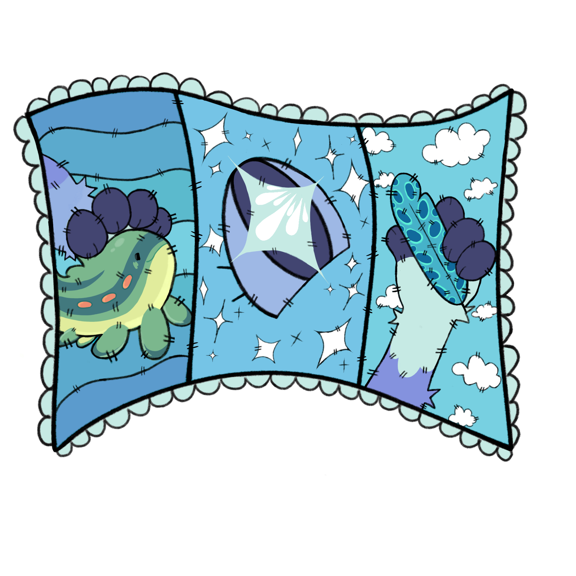 The first represents the creature she encountered before meeting anyone else. She cares for it a lot and it seems it enjoys being petted.