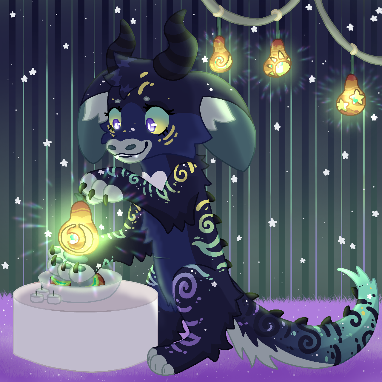 Aurora is carving some Lantern Fruit and is popping candles inside to light them up! It's her favourite thing to do for the Twilight Carnival!