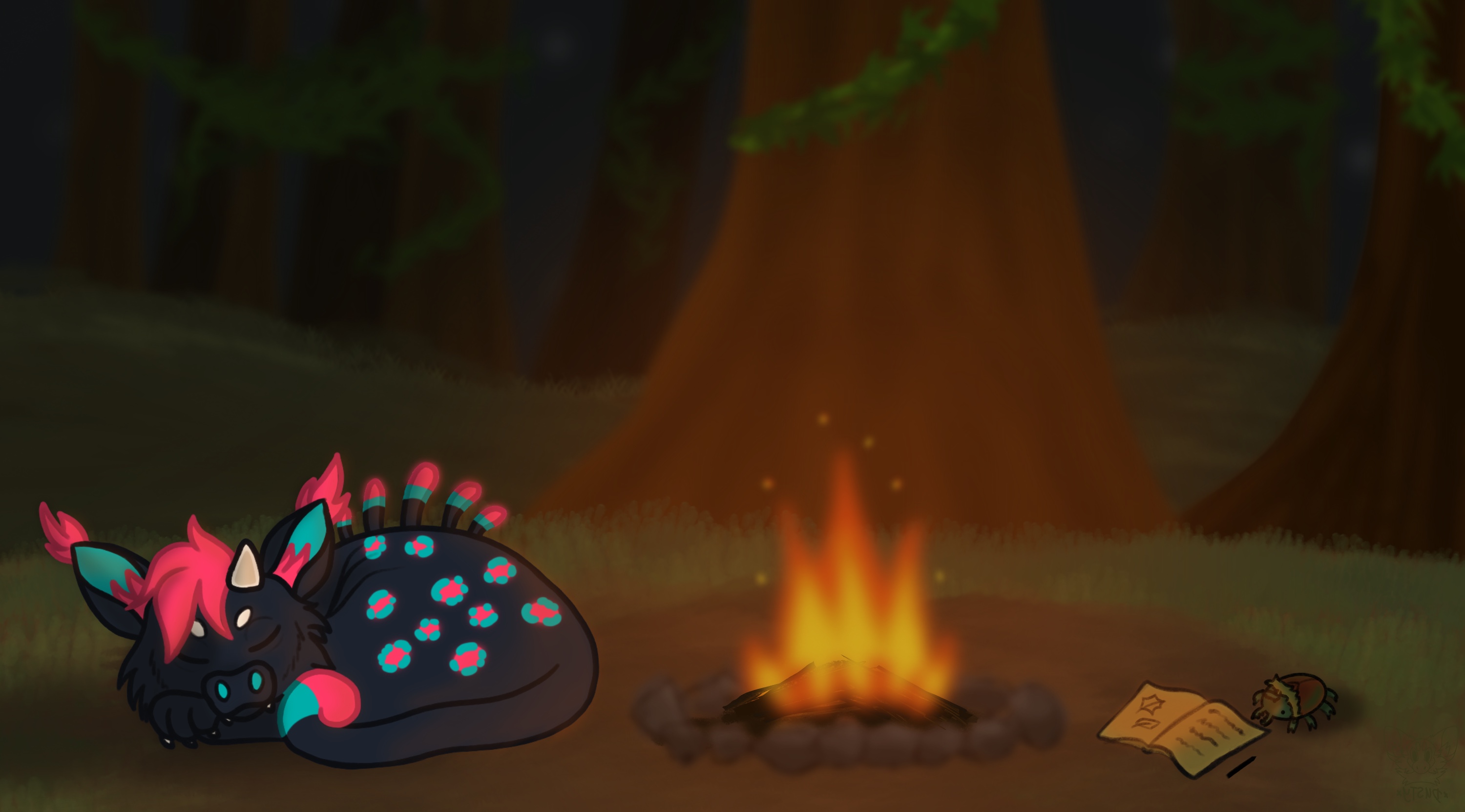 After a long day of researching the plants and fauna, Cleo rests while a small visitor comes to check them out!