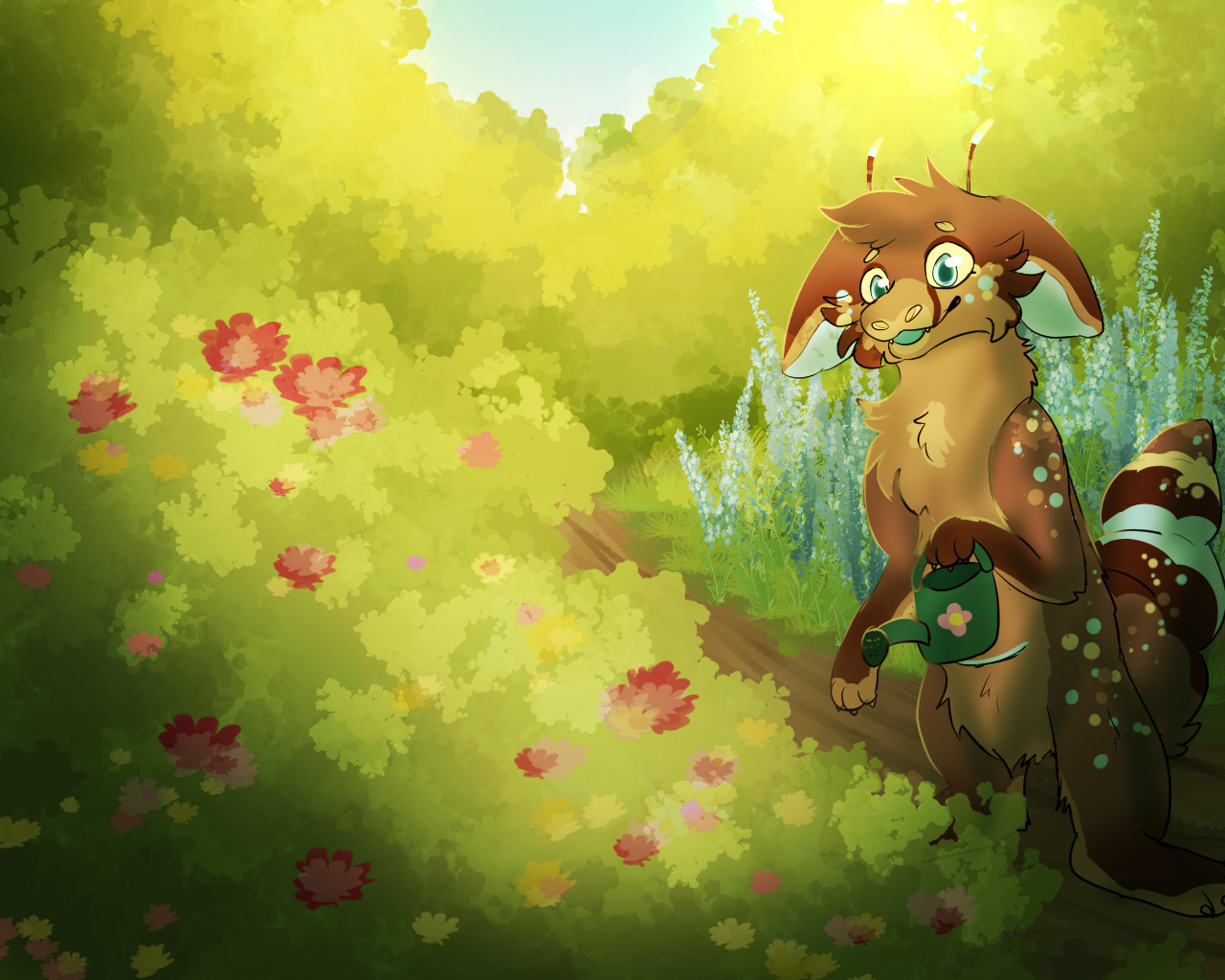 Fritter takes her time watering the neighbourhood garden!