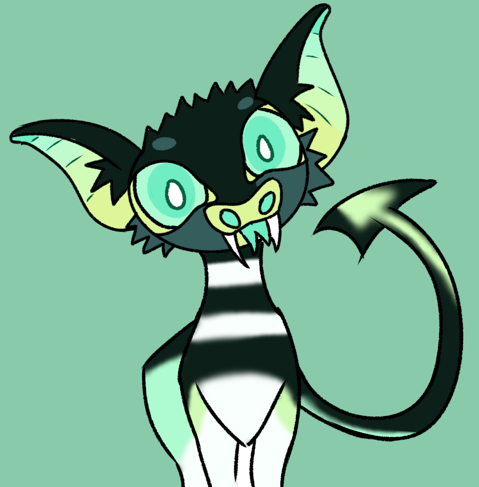 HIS LITTLE FACE... I CANT TAKE IT... TOO MUCH CUTENESS... i love how you drew his big ol eyes and teeth, i cant get over how cute this style is!!! THE TONGUE PEEK AS WELL... WEEPS... THANK YOU SO MUCH!!!!