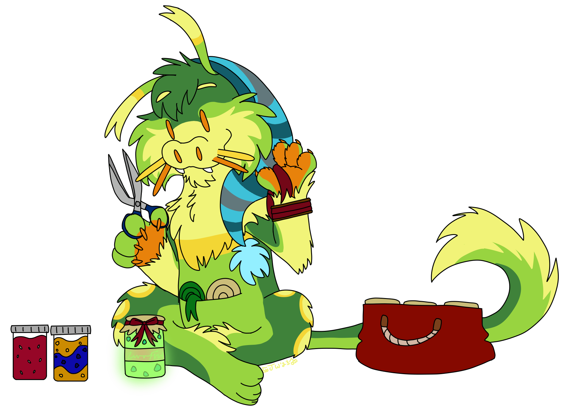 Zuki spends the colder months packing up all the preserved fruits and veggies he grew to share with neighbors! He loves to go the extra mile and wrap up the jars.