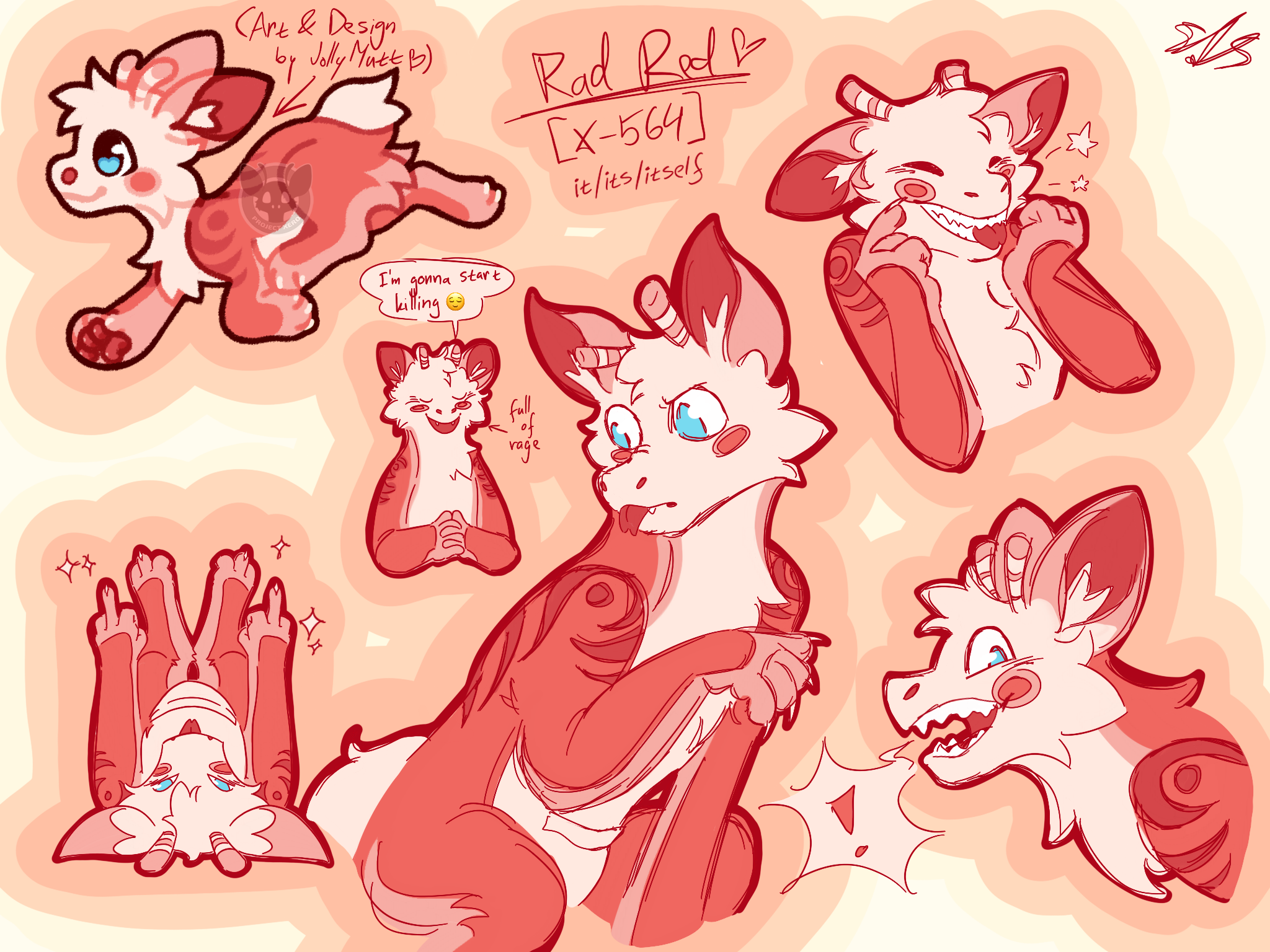 First attempts to explore Rad's design for myself! The art in the top left corner is JollyMutt's original art and design for reference :)