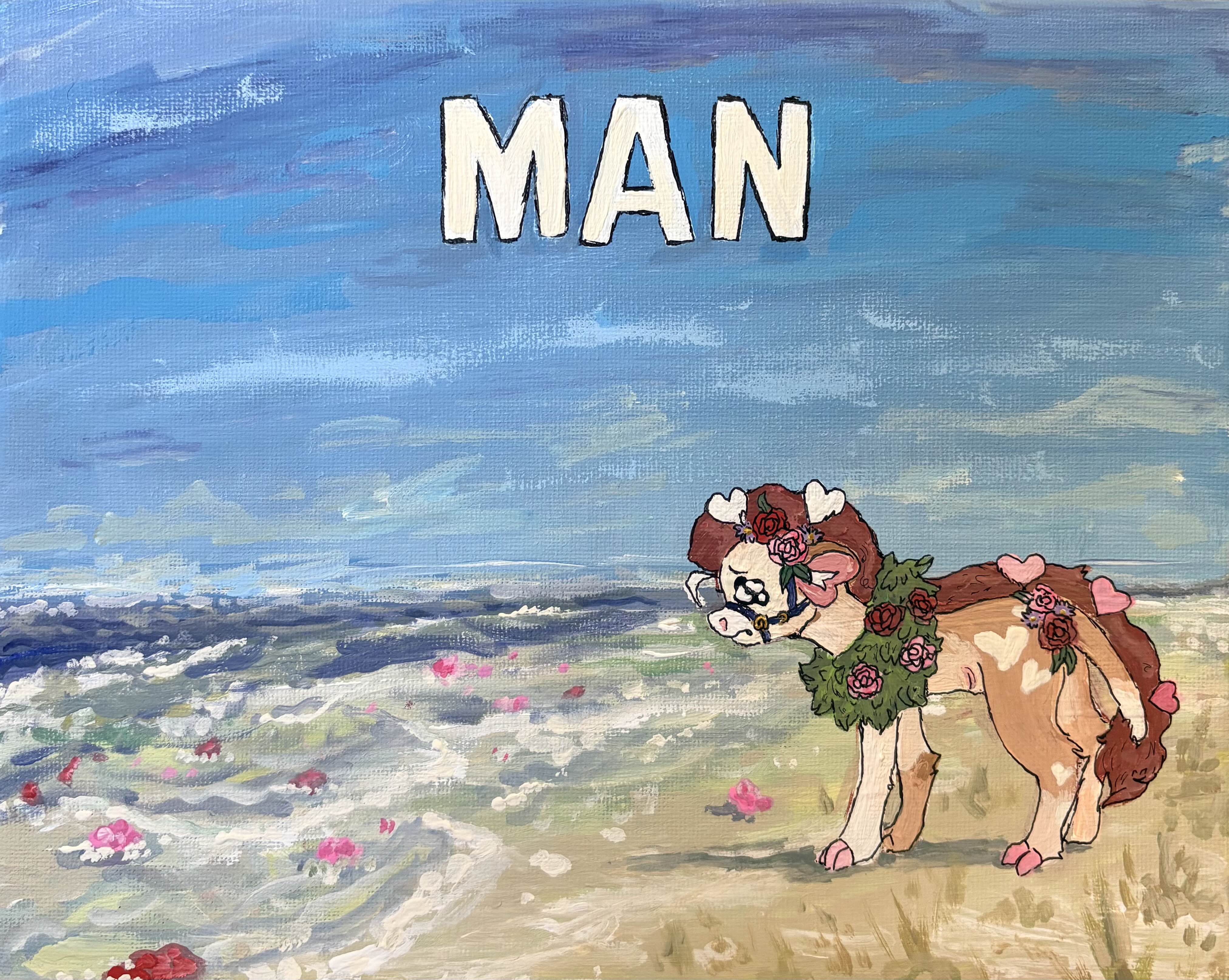 POV you lost the race. Referencing the horse staring out to sea meme . Acrylic on canvas, 8 x 10